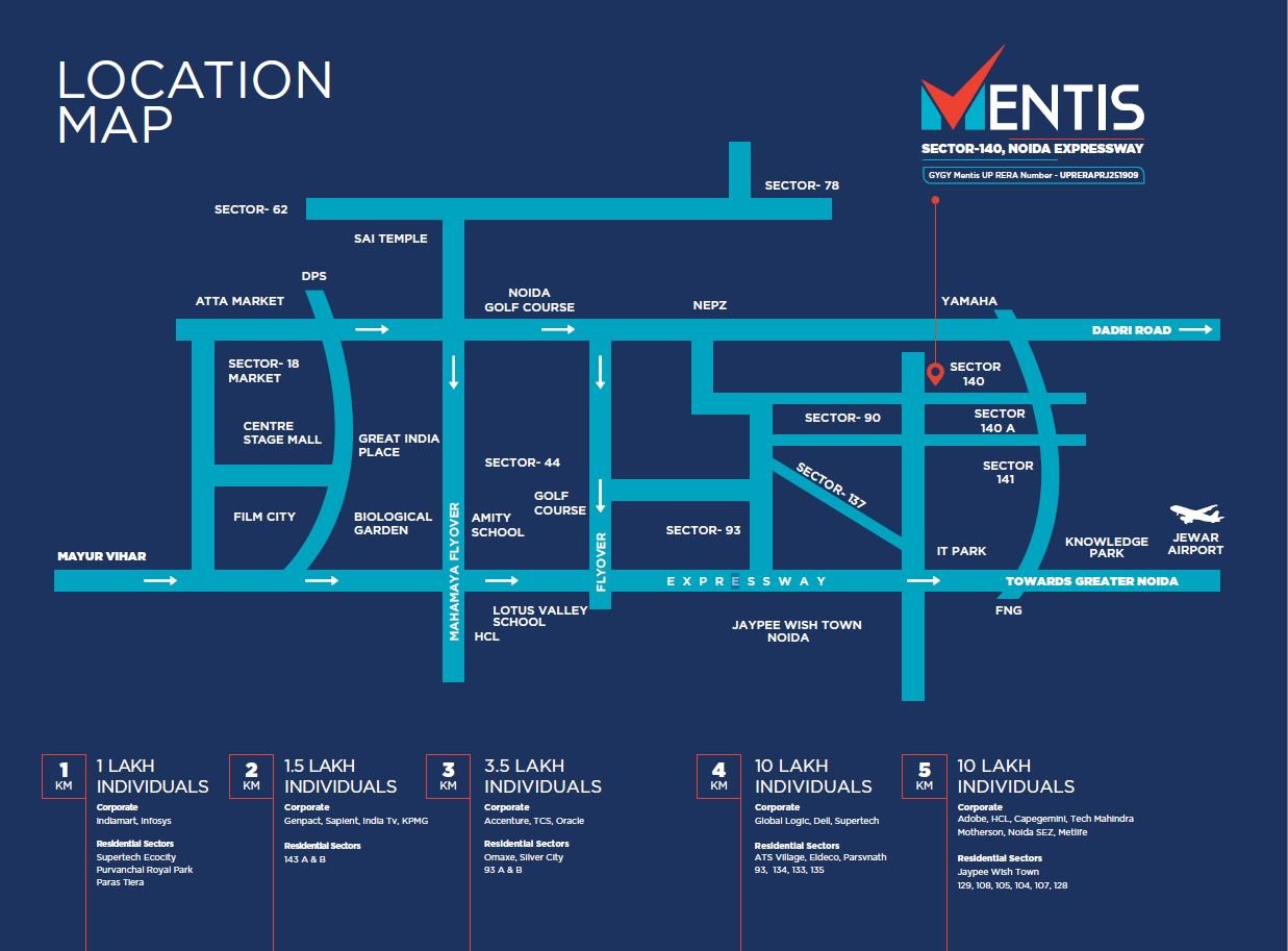 Premium IT/ITES Office & Retail Spaces in a Grade-A Commercial Hub GYGY Mentis Infradesign presents a world-class commercial project—Mentis, located in the prime Sector 140 of Noida. Spread over 4.94 acres, this IT/ITES park comprises two towers (Towers A G+23 and Tower B G+ 19), offering intelligently designed office spaces and retail shops.